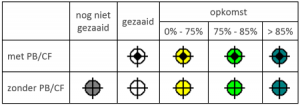 Home » Cartografie waarnemingsvelden » Maart-april 2019 : uitzaai en opkomstpercentage (bieten) » tabel cartografie uitzaai