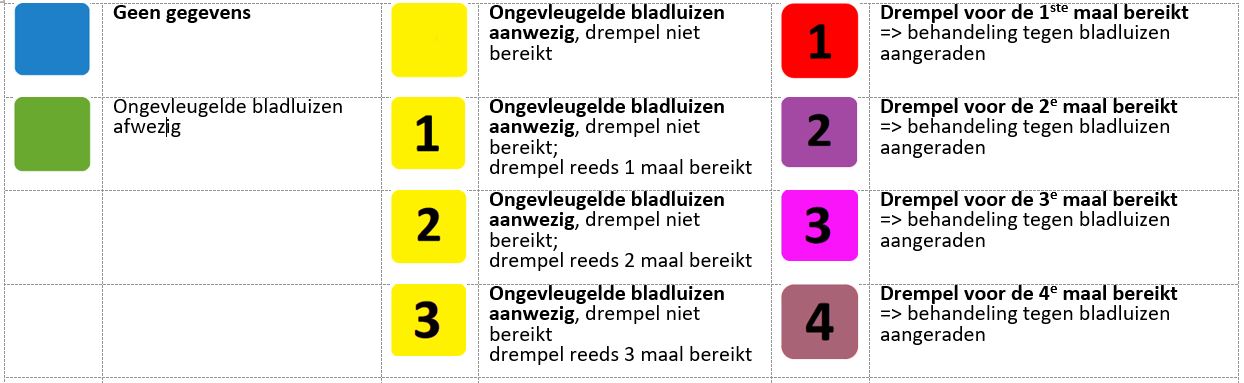 Home » Cartografie waarnemingsvelden » Mei-juni 2020: kaart “waarnemingen groene bladluizen” (bieten) » Legende-NL-3