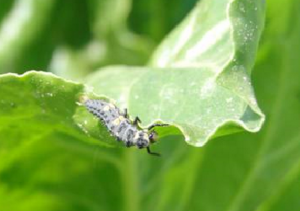 Vaak worden de larven van het lieveheersbeestje en de rupsen van de nachtvlinder met elkaar verward. De beten en schade aan de bladeren veroorzaakt door de rupsen van de nachtvlinder (bijvoorbeeld de gamma-uil) worden hen vaak ten onrechte toegeschreven. De larven van het lieveheersbeestje zijn zeer nuttig daar ze overvloedig bladluizen eten, zoals ze dat ook doen in het volwassen stadium. De larven zijn grijs-zwart, met een gestroomlijnde en gesegmenteerde buik, versierd met verschillende geel-oranje vlekken en met « plukjes haar » (spiculum). Ze hebben drie paar zwarte poten. Ze verplaatsen zich snel op zoek naar bladluizen. Deze larven en volwassen insecten, alsook andere nuttige insecten (larven van de zweefvlieg, larven van de gaasvlieg, weekschildkevers) zijn momenteel zeer actief.