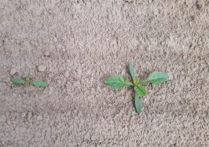 Pour les parcelles semées hâtivement, le stade 4-6 feuilles est atteint. A partir du stade 4 feuilles, des herbicides racinaires peuvent être ajoutés pour construire et garantir un effet de rémanence. Notez toutefois que sur les parcelles où la population de betteraves est juste suffisante et où il y a encore des levées plus tardives (stade cotylédonaire), le stade des plus petites betteraves doit être suivi lors de la composition du mélange FAR. S’il y a suffisamment de betteraves et que le stade général est 4 feuilles, ‘Frontier Elite’, ‘Dual Gold’, Centium-Frontier Elite ou ‘Venzar’ peuvent être ajoutés pour assurer l’effet de rémanence.