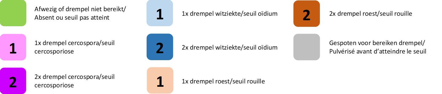Home » Betterave » Légende de la carte “Problèmes sanitaires signalés en culture” service d’avertissement betterave » Legende bladziekten biet