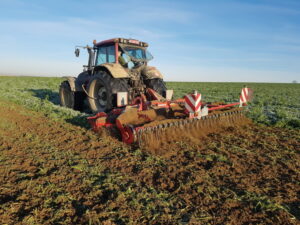 Le passage d’un déchaumeur peut détruire le couvert. Il serait donc préférable d’utiliser un déchaumeur à disques pour éviter tout bourrage et découper les tiges des végétaux. La dégradation des résidus sera rapide dû au mélange de l’engrais vert et le sol.