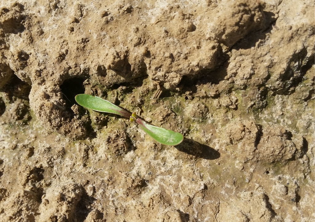 De bieten die nu opkomen vertonen vrij kleine lichtgroene of gele kiembladeren. De opkomsten beginnen op dit moment, ongeveer 11-12 dagen na de zaai.
