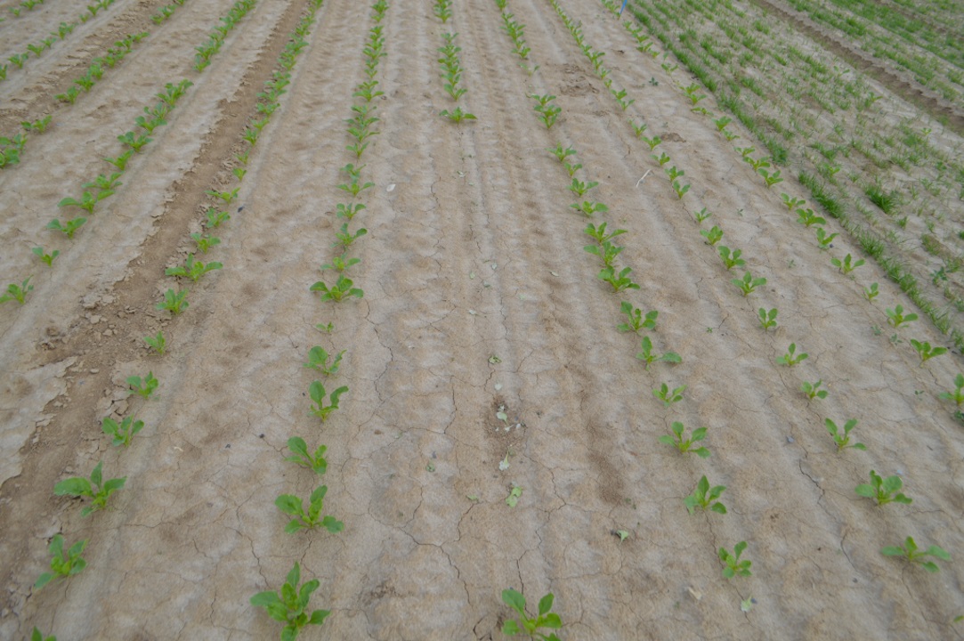 Afhankelijk van de zaaidatum hebben de eerstgezaaide bieten meer dan 10 bladeren en de later gezaaide bieten 2 tot 4 bladeren. Sommige percelen vertonen bieten in verschillende stadia door een gespreide opkomst. Houd bij de keuze van herbiciden rekening met het ontwikkelingsstadium van de bieten in uw perceel.