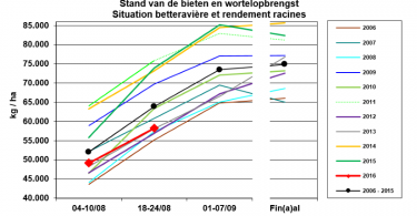 Teeltontwikkeling Groeicurve suikerbieten: 3de staalname: hoge en continue aanwinst van de suikeropbrengst per hectare 2 min read